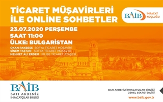İhracatçılarımızın ihtiyaç duyabileceği ticari konular hakkında bilgilendirmelerde bulunmak ve ihracat sırasında yaşadığı sorunlarının çözümüne katkı sağlamak amacıyla yürütmekte olduğumuz "İhracat Koçluğu” projemiz kapsamında bölgemizden en fazla ihracat gerçekleştirilen ülkeler arasında yer alan Bulgaristan'ın Sofya Ticaret Müşavirleri Sayın Okan PAKBEŞE ve Sayın Sinem TAŞTAN ile Filibe Ticaret Ataşesi Sayın Mehmet Ali ERDEM'in katılımlarıyla 23 Temmuz 2020 günü saat 11:00'da söz konusu ülke pazarının güncel durumu ve potansiyelinin ele alınacağı online bir webinar düzenlenecektir.