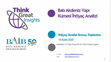 Ticaret Bakanlığımızın destekleriyle Batı Akdeniz İhracatçılar Birliği olarak 21 proje firmanın iştiraki ile birlikte yürütmekte olduğumuz Batı Akdeniz Yapı Kümesinin İhtiyaç Analizi faaliyeti tamamlandı.
