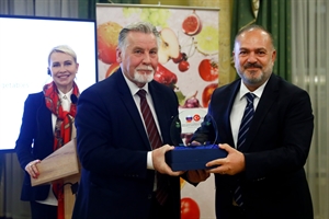 Yaş meyve sebze ürünlerimizin Rusya, Almanya ve Polonya'da tanıtımını amaçlayan Turquality programı çerçevesinde Türkiye Yaş Meyve ve Sebzesi Tanıtım Projesi etkinlikleri Moskova'da gerçekleşti. Etkinlikler çerçevesinde Türkiye-Rusya Yaş Meyve Sebze Zirvesi ve Türkiye Cumhuriyeti - Rusya Federasyonu Ticari İlişkileri ve Yaş Meyve Sebze Sektörünün Önemi paneli düzenlendi. Programın ilgi çeken bir diğer etkinliği de Rus şeflerin Rusya'nın önde gelen yemek yazarlarına ve özel davetlilere Türk sebze meyveleri ile yaptığı yemeklerin sunulduğu gala yemeği oldu. Etkinlerde Birliğimizi aynı zamanda Türkiye Yaş Meyve Sebze Sektör Kurulu Başkan Yardımcısı olan Ümit Mirza Çavuşoğlu temsil ederken, Moskova Büyükelçimiz Sayın Tanju Bilgiç, İhracat Genel Müdürümüz Sayın Mehmet Ali Kılıçkaya, Türkiye Yaş Meyve Sebze Sektör Kurulu Başkanı Ali Kavak, Türkiye Yaş Meyve Sebze Sektör Kurulu Başkan Yardımcılarından Prof. Dr. Senih Yazgan, Türkiye Yaş Meyve Sebze Sektör Kurulu Üyeleri Ferhat Gürüz, Oğuzhan Altun, Kemal Kaçmaz ve Akdeniz Yaş Meyve Sebze İhracatçıları Birliği YK Üyesi Mustafa Gökhan Soylu etkinliklere katılım sağladı. Moskova Ticaret Başmüşavirimiz Çiğdem Şamiloğlu Erkoç ve Ticaret Müşavirlerimizin de katılım sağladığı Türkiye Cumhuriyeti - Rusya Federasyonu Yaş Meyve Sebze Zirvesi; Rusya'dan kamu, iş dünyası ve medyadan çok önemli isimlere ev sahipliği yaptı. Gecede aynı zamanda Türkiye Yaş Meyve Sebze Sektör Kurulu Başkan Yardımcısı olan Birlik Başkanımız Ümit Mirza Çavuşoğlu, Roselhodnadzor Başkanlık Başdanışmanı Vasily Lavrovsky'a günün anısına plaket verdi.