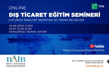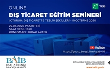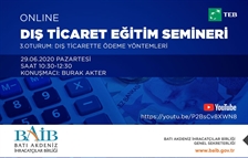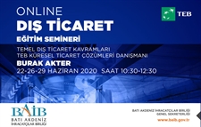 Batı Akdeniz İhracatçılar Birliği tarafından, 3 ayrı oturumdan oluşan Online Dış Ticaret Eğitim Seminerleri düzenlenecektir. Söz konusu eğitim, TİM-TEB işbirliği protokolü kapsamında Türkiye Ekonomi Bankası(TEB) Küresel Ticaret Çözümleri Danışmanı Sayın Burak Akter tarafından verilecektir.