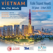 T.C. Ticaret Bakanlığı ve Türkiye İhracatçılar Meclisi (TİM) koordinasyonu, Batı Akdeniz İhracatçılar Birliği (BAİB) organizasyonunda, Ticaret Bakanlığı Uzak Ülkeler Stratejisi kapsamında potansiyel pazar niteliğindeki ülkelere yönelik ihracatımızda artış sağlanması ve ihraç ürünlerimizin tanıtımı amacıyla, 26 Şubat-3 Mart 2023 tarihleri arasında Vietnam'a yönelik olarak tüm sektörleri kapsayan genel nitelikli bir Ticaret Heyeti gerçekleştirilecek olup Ho Chi Minh City şehrini kapsayacak söz konusu organizasyonda Vietnam'dan iş insanlarının davet edileceği genel nitelikli iş görüşmelerinin gerçekleştirilmesi öngörülmektedir.