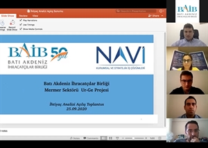 T.C. Ticaret Bakanlığı koordinasyonu ve destekleriyle Batı Akdeniz İhracatçılar Birliği organizasyonunda gerçekleştirilen "Batı Akdeniz Mermer Kümesi-2” URGE Projesinin ilk faaliyeti olan ihtiyaç analizi açılış toplantısı pandemi koşulları göz önünde bulundurularak 25 Eylül 2020 Cuma günü online platformda gerçekleştirildi.