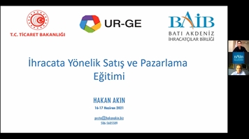 16 Haziran 2021 Çarşamba günü ve 17 Haziran 2021 Perşembe günü eğitmen Hakan Akın tarafından verilen "İhracata Yönelik Satış ve Pazarlama Eğitimi”nde, ihracat sürecinde satış ve pazarlama alt yapısının oluşturulması; ürün, müşteri profili, mevzuat ve uluslararası teamüllerin belirlenmesi ve planlanması; pazarlama ve pazar araştırması ile ilgili süreçlerin tanıtımı; pazar ve müşteri araştırma yöntemleri ve stratejileri, istihbarat kaynakların kullanımı gibi konular ve alt başlıklarına yer verildi.