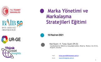 Proje kapsamında düzenlenen ikinci eğitim olan Marka Yönetimi ve Markalaşma Stratejileri eğitimi 16 Haziran 2021 tarihinde eğitmen Tülay Güzel tarafından gerçekleştirildi.