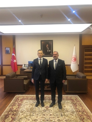 BAİB Yönetim Kurulu Başkanımız Ümit Mirza Çavuşoğlu, Ticaret Bakan Yardımcımız Sayın Özgür Volkan Ağar'ı makamında ziyaret ederek yeni görevinde başarılar dileyip, ihracat ailesi adına hayırlı olsun dileklerini sundu.