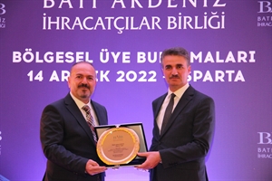 Batı Akdeniz İhracatçılar Birliği (BAİB) Bölgesel Üye Buluşması Burdur ilimizin ardından Isparta ilimizde gerçekleşti. İhracatçı firmaların BAİB Yönetimi ile istişareler gerçekleştirdiği toplantının ardından, 2021 yılında sektörlerinde en fazla ihracat gerçekleştiren Isparta firmalarına ödül verildi.Törene; Isparta Valisi Aydın Baruş ve il protokolü katıldı. Firmalarımızın ödüllerini Isparta Valisi Aydın Baruş, Isparta Uygulamalı Bilimler Üniversitesi Prof. Dr. Yılmaz Çatal, Isparta Vali Yardımcısı Cemil Kılınç ve BAİB Başkanı Ümit Mirza Çavuşoğlu takdim etti.