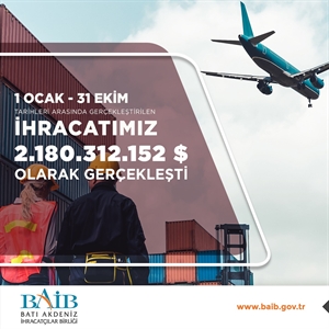 artarak, 221 milyon 681 bin 703 dolara ulaştı. Bölgemizden 1 Ocak ila 31 Ekim