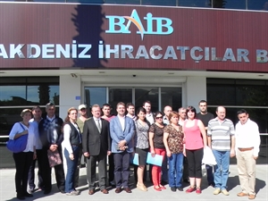 Batı Akdeniz Tarımsal Araştırma Enstitüsü (BATEM) organizasyonu ile bölgeye inceleme gezisi gerçekleştiren Moldovalı üreticilerden oluşan bir heyet, Batı Akdeniz İhracatçılar Birliği'ni de (BAİB) ziyaret etti. Moldovalı üreticilerden oluşan heyeti BAİB Başkan Yardımcısı Hakkı Bahar kabul etti. BAİB Başkan Yardımcısı Hakkı Bahar, Moldovalı üreticilere BAİB ve bölgenin ihracatı hakkında bilgi verdi.