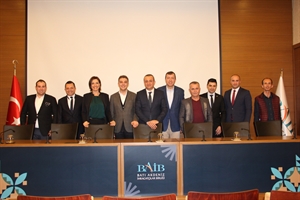 BAİB Başkanı Sayın Hakkı BAHAR, BAİB Başkan Yardımcısı Sayın Hakkı Ergin CİVAN, BAİB Yönetim Kurulu Üyeleri Sayın Süleyman DURAN ve Sayın Bahadır ERDOĞAN'ın katıldığı toplantıda, protokol çerçevesinde atılabilecek adımlar hakkında görüş alışverişinde bulunuldu. Toplantıda, bir yıla kadar vadeli ihracat döviz kredilerinde özel faiz avantajlarının sunulacağı ve ihracatçılara döviz alım satım işlemleri için en uygun fiyatların verileceği de kaydedildi. Öte yandanwww.tebiledisticaret.comweb sayfası üzerinden firmaların ihracat ve ithalatla ilgili birçok bilgiye kısa sürede ulaşabilecekleri ifade edildi.