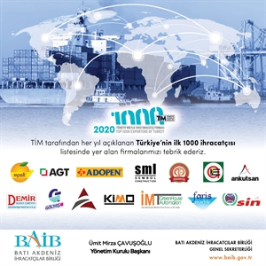Firmalarımızı Türkiye'nin ilk 1000 ihracatçısı listesinde yer alarak bölgemizin ve ülkemizin ekonomisine gerçekleştirdikleri katkılardan dolayı tebrik eder ve başarılarının artarak devam etmesini dileriz.